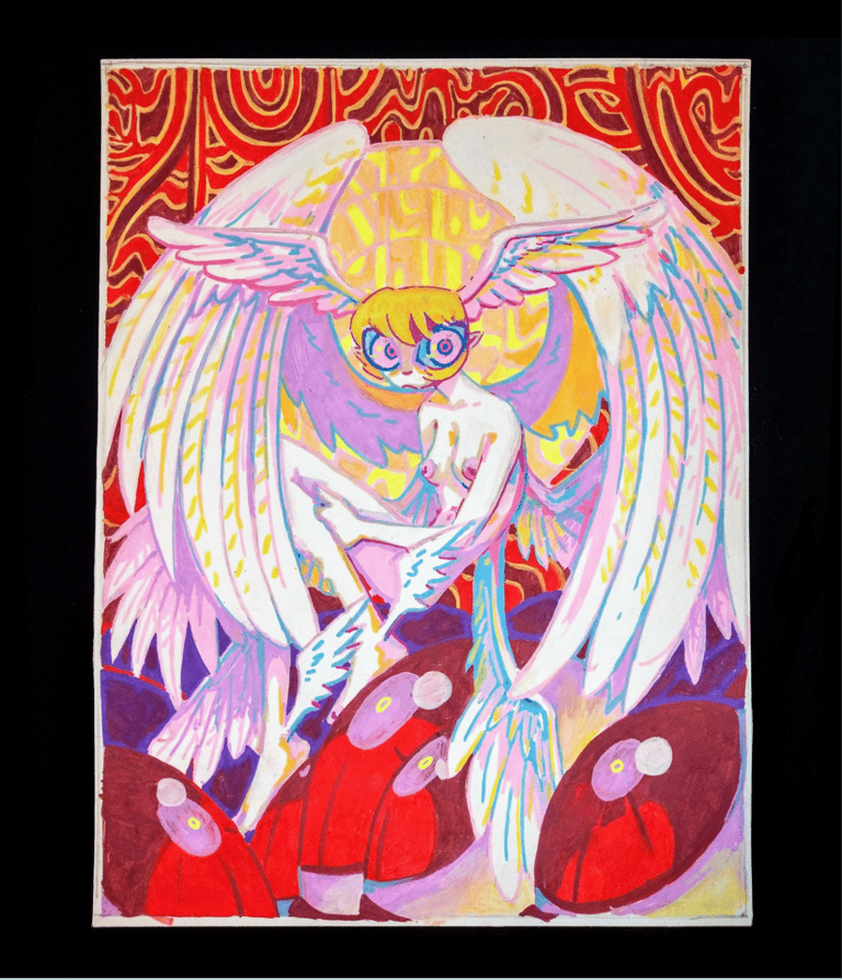 An original painting, done in posca, acrylic, gel pen and gouache on paper.