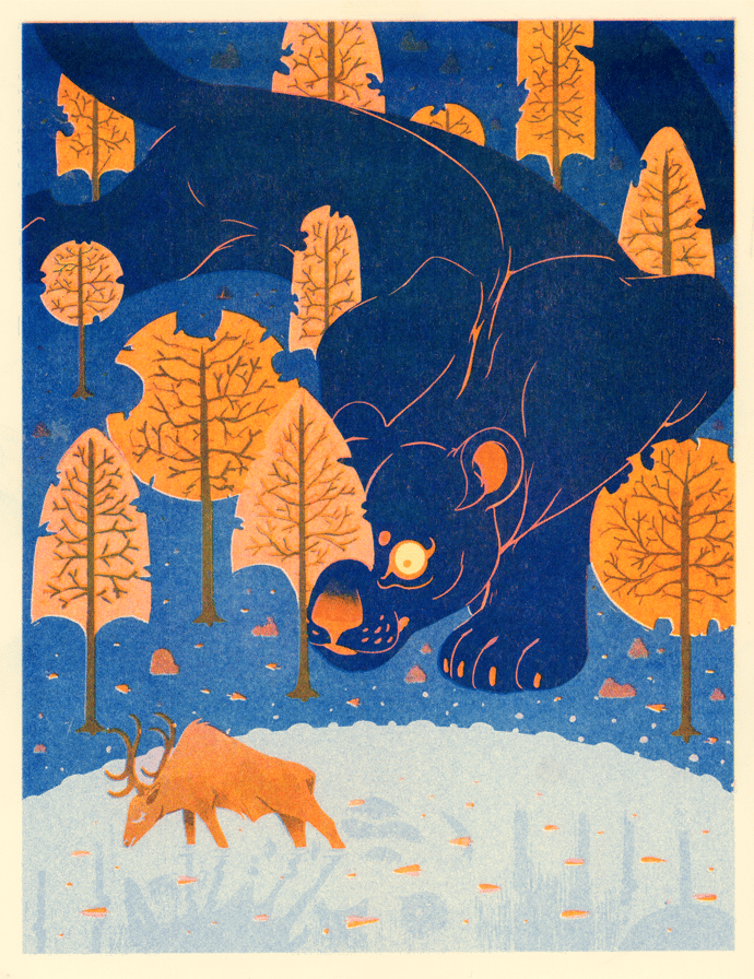 Stag and his Reflection Risograph